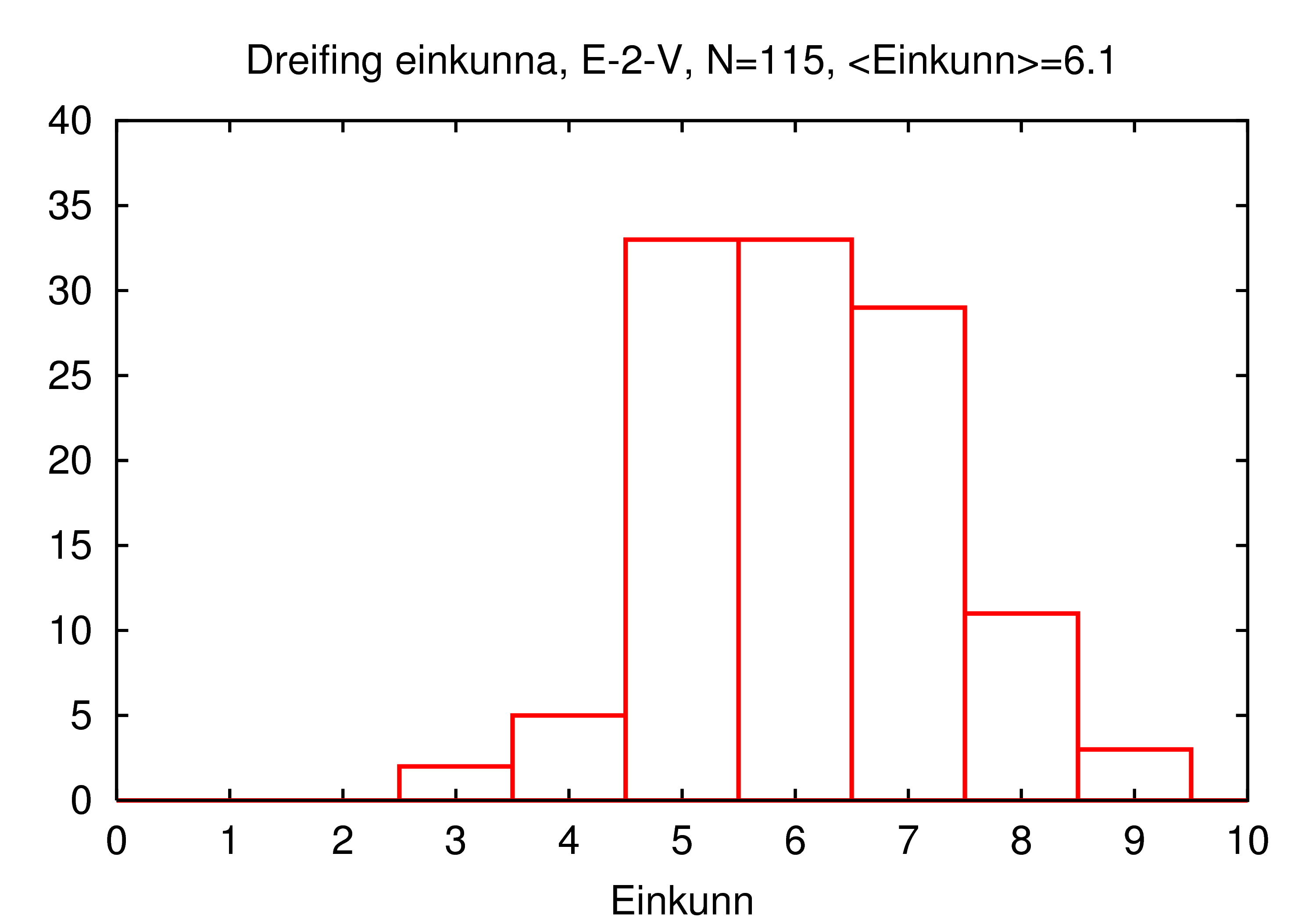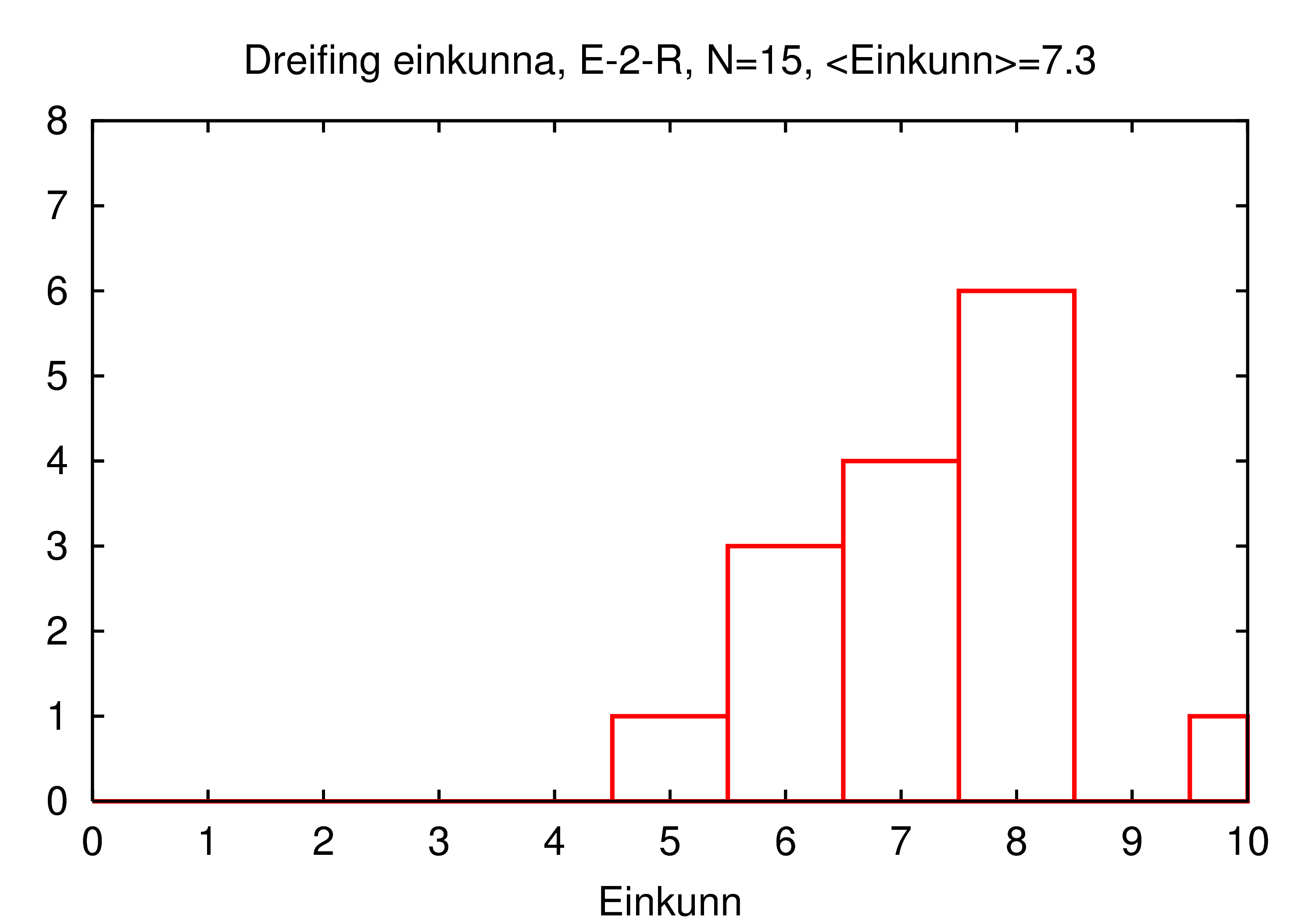 Dreifing einkunna í Eðlisfræði 2 V og R vorið 2007