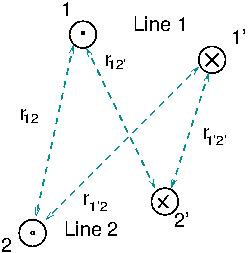 - Consider a two-wire line made of two thin parallel wires carrying a DC current