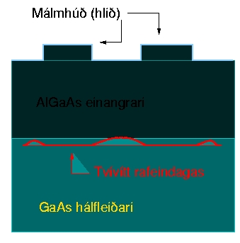 safnast frjálsar rafeindir saman í örþunnt lag. Rafeindirnar geta
