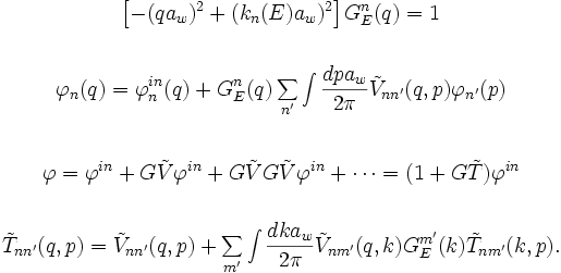 Heildisjafnan fyrir ástand-n í skriðþungarúminu er óheppileg að því leyti að innástandið er ekki bylgja eins og í staðarrúminu heldur einn mjög skarpur toppur. Til þess að leysa þann vanda er jöfnunni breytt í tengdar heildisjöfnur fyrir dreififylkið Tnn'(q,p). Þessum jöfnum er síðan breytt í fylkjajöfnu af gerðinni Ax=b, þar sem x er óþekkti vigurinn sem gefa mun Tnn'(q,p). Fylkið A er í þessum reikningum af stærðinni 400x400 upp í 6000x6000 og er búið til þannig að hluti heildunarinnar er gerður með greinireikningi í kringum sérstöðupunkta Greens-fallsins.