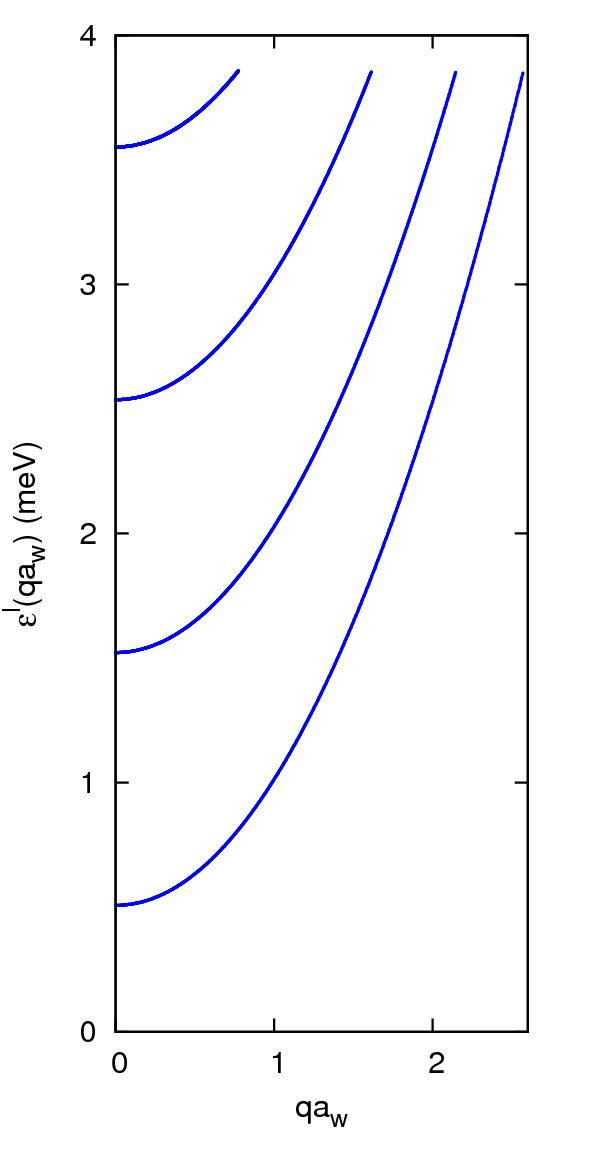 Orkurófið fyrir ytri hálfóendanlega leiðslu er sýnt hér að ofan til vinstri. Ástöndum rafeindanna svipar til standandi bylgna, þannig að hvert ástand hefur jafn mikinn skriðþunga í sitthvora áttina langs eftir leiðslunni, ±ħq. Ástöndin safnast saman í samfellda orkuborða. Hreyfing rafeindanna þvert á leiðsluna er skömmtuð. Öll ástönd lægsta orkuborðans lýsa frjálsi hreyfingu eða standandi bylgju eftir leiðslunni, en hreyfingin þvert á leiðsluna er lægsti sveifluháttur innilokunarmættisins sem lýsir lögun leiðslunnar í þá átt. Annar borðinn er myndaður af ástöndum sem öll tilheyra fyrsta örvaða sveifluhættinum þvert á leiðsluna. Óvíxlverkandi rafeindabylgjunum í leiðslunum er því lýst á samsvarandi hátt og rafsegulbylgjum í bylgjustokki.