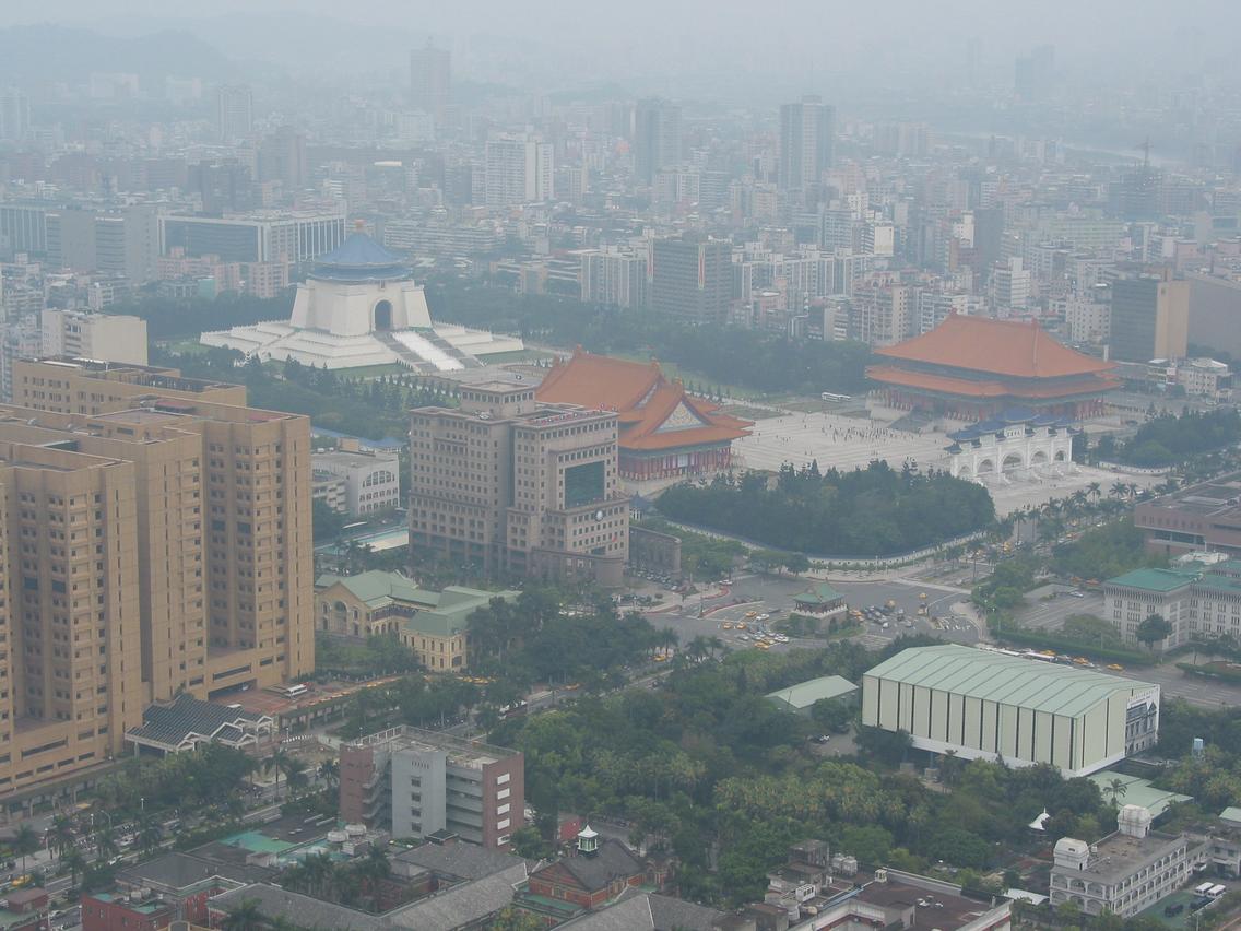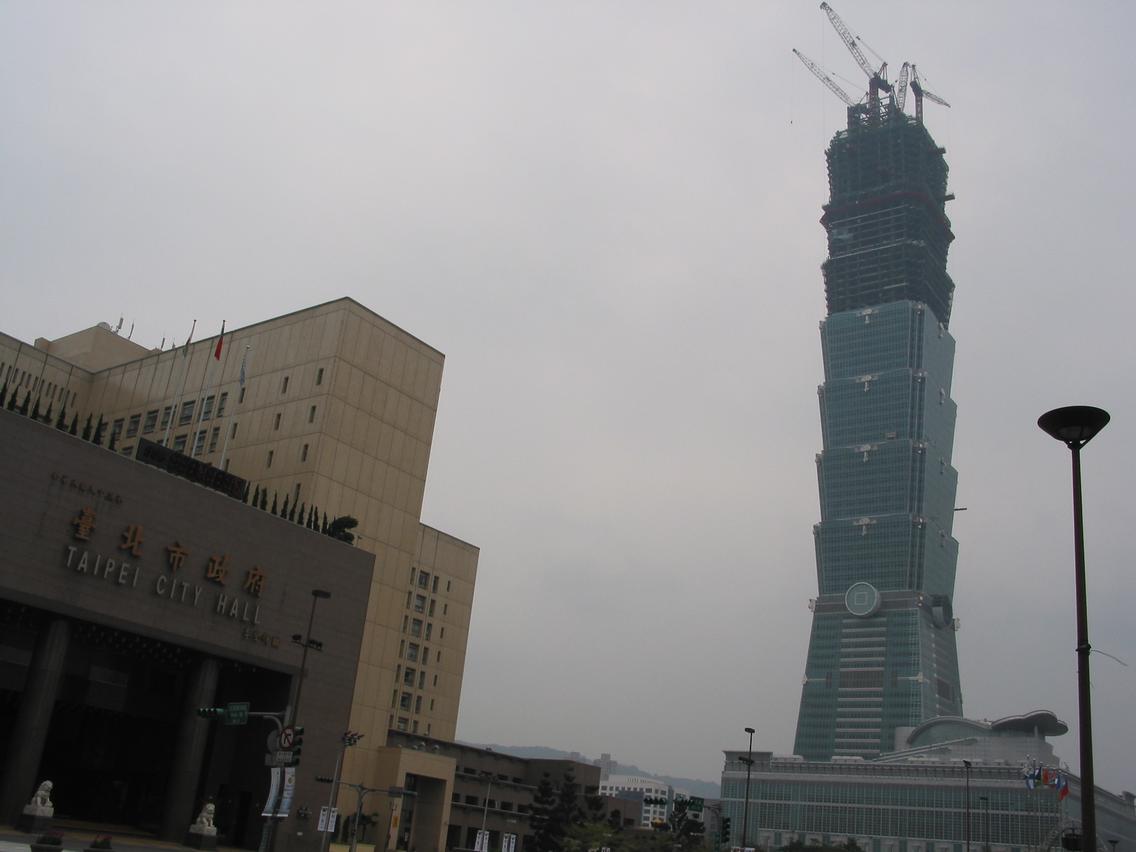 TæPei 101 og síðan loftmyndum teknum úr Hsin Koung (ísl. ný birta)