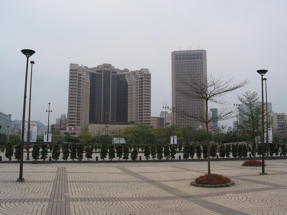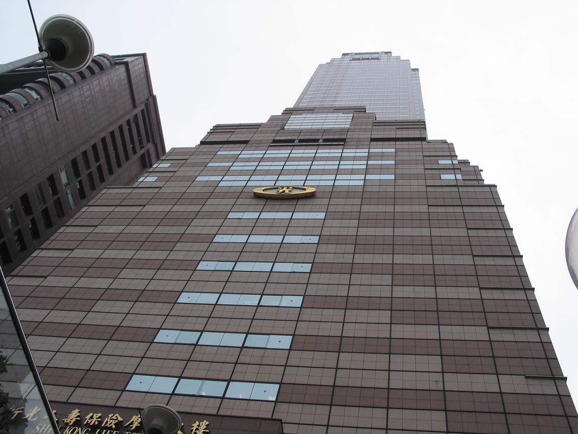 Hsin Koung turninn er 44 hæðir og gnæfir yfir lestarstöðinni í TæPei.