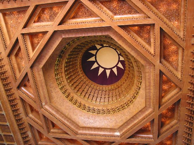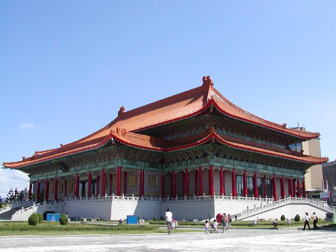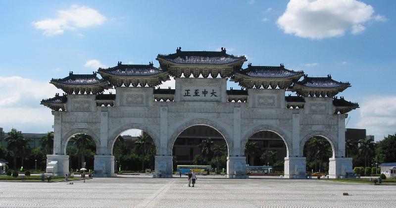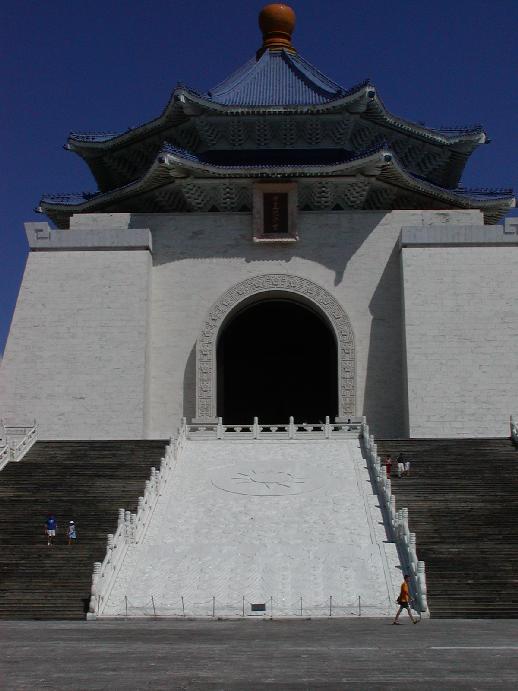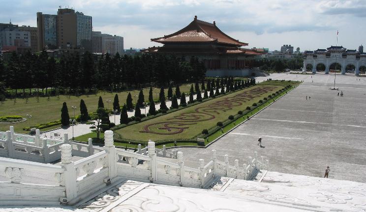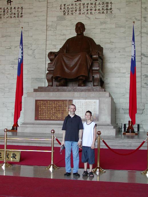 eine 16 m hohe Bronzestatue Chiangs, flankiert von