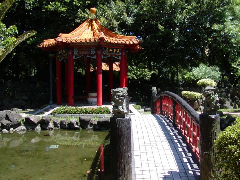 Ende des Parkes erhebt sich die CKS-Gedaechtnishalle. Der Unterbau